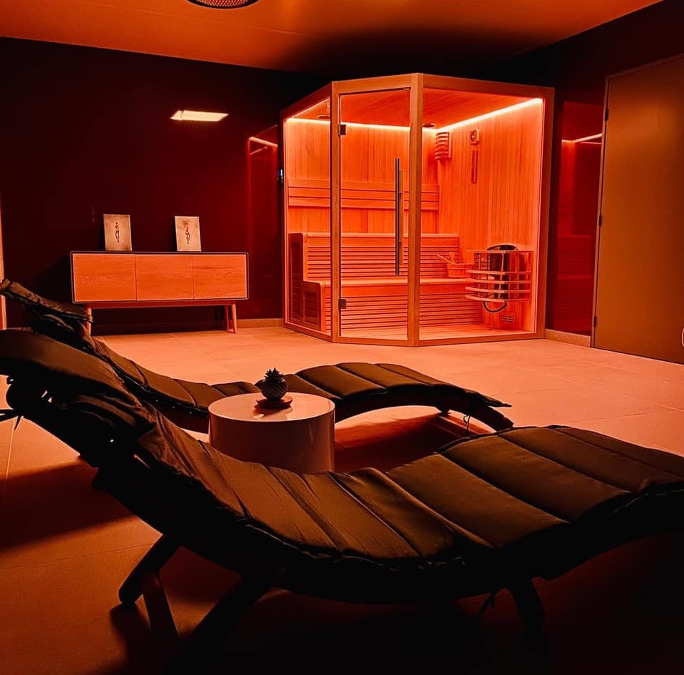 - Côté Sauna : Boiserie extérieure en Cèdre rouge du Canada // Boiserie intérieure en tremble des Etats-Unis.
