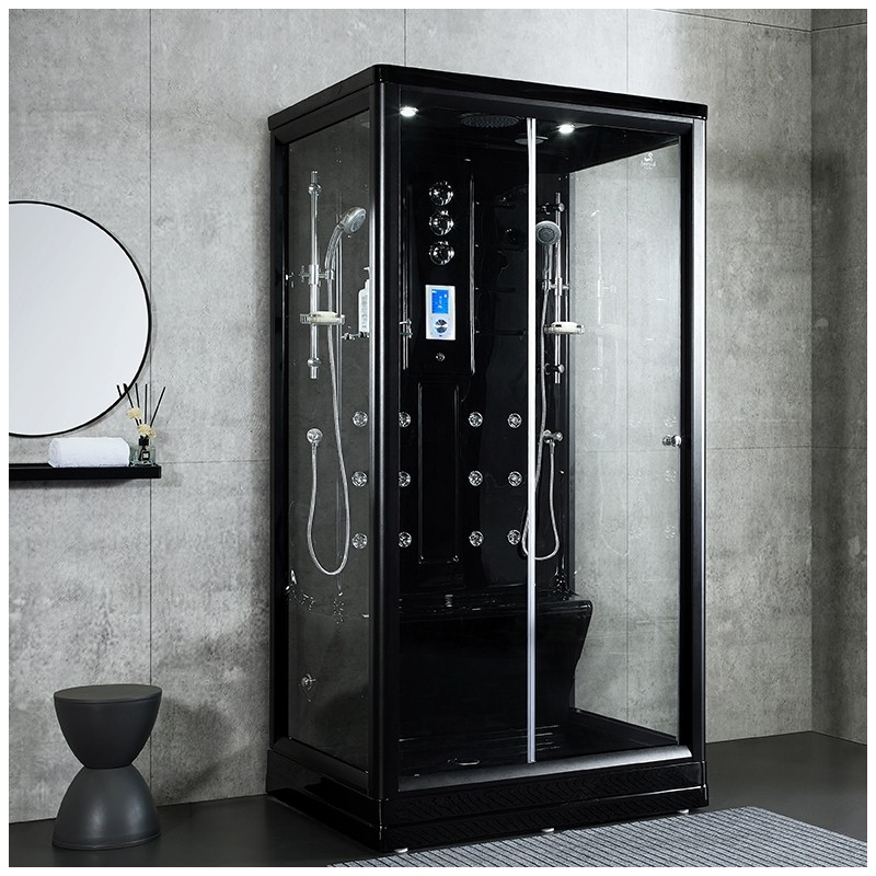 Cabine douche hammam Boreal® H-DUO Black Edition 112,5 x 90,5 x 220H cm