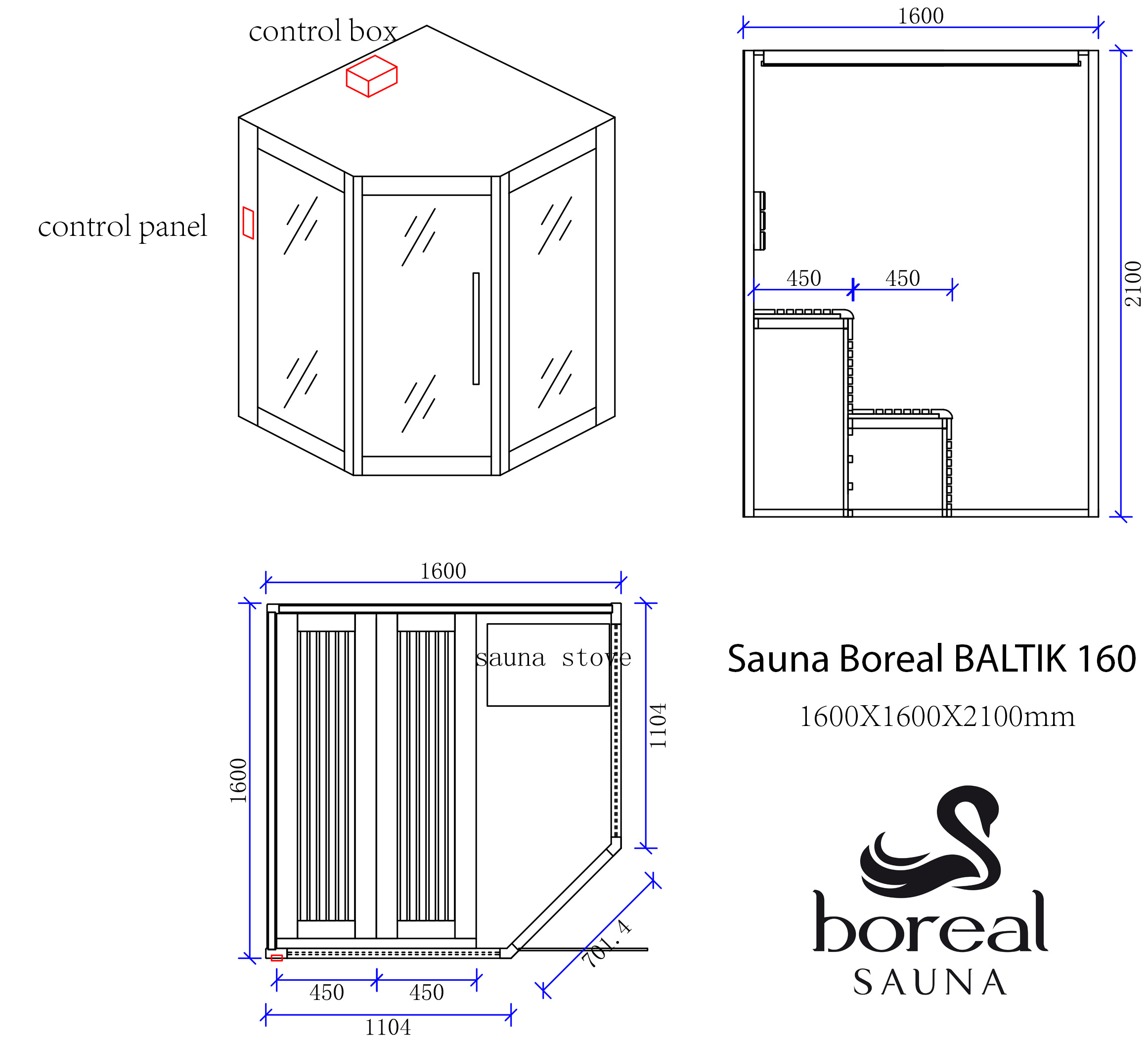 Le sauna Boreal® BALTIK Angle 160×160 – 3/4 places – 160 × 160 × 210H cm est conçu pour optimiser l’espace tout en offrant une cabine conviviale et élégante.