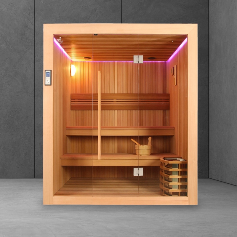 Le mariage du cèdre rouge et des équipements modernes confère à ce modèle une place de choix dans l’univers du sauna.