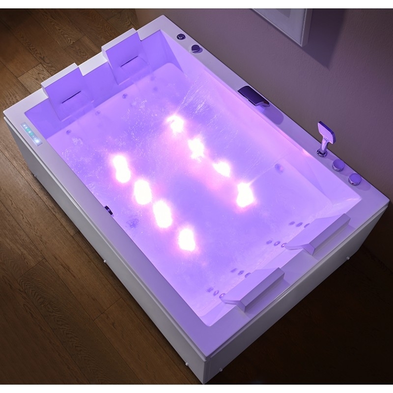 Le générateur d’ozone garantit une hygiène parfaite grâce à la désinfection automatique de l’eau. La robinetterie en laiton massif, le pommeau de douche, le bec cascade inox, et les 3 tabliers en acrylique renforcé assurent solidité et élégance. Sa cuve en acrylique pur de 4,5 mm, montée sur une structure stable, combine résistance et brillance durable, conforme aux normes CE et TUV.