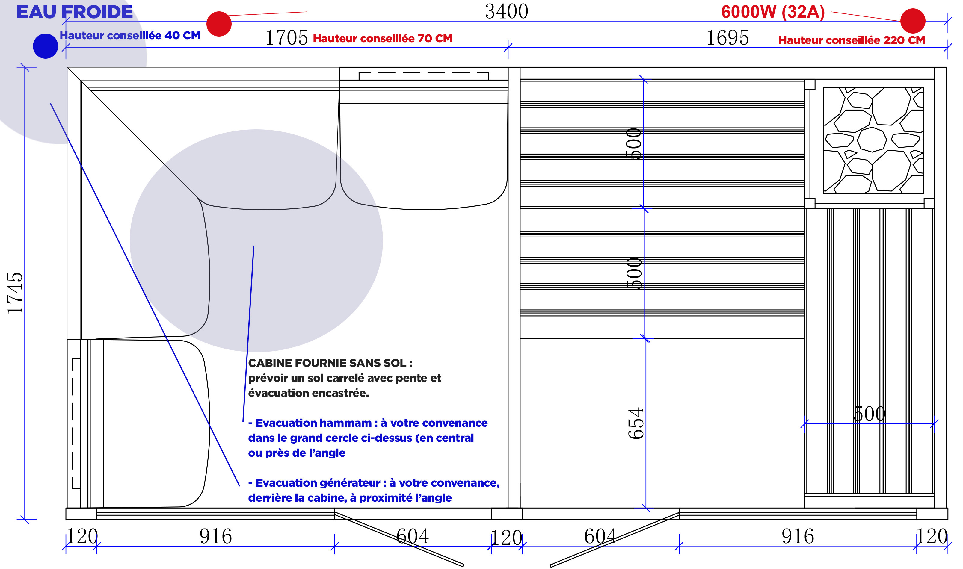 - Le combiné ultime Sauna + Hammam. cadre en bois massif en Cèdre rouge du Canada, et intérieur du sauna en tremble des Etats-Unis.